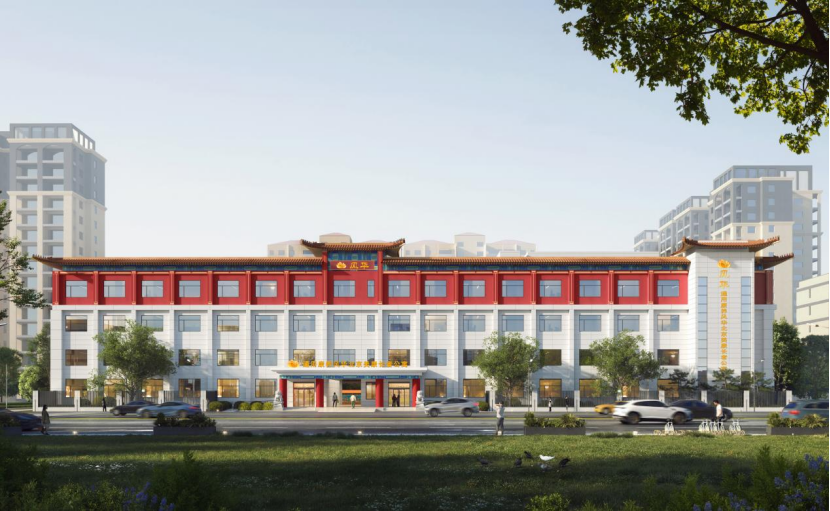 設(shè)計(jì)團(tuán)隊(duì)選擇以“最小干預(yù)”喚醒“最大價(jià)值”,首創(chuàng)?“新京韻四合院式養(yǎng)老”理念。外立面設(shè)計(jì)保留并強(qiáng)化原有建筑的特色元素,通過植入中式門頭、紅柱、石獅等文化符號(hào),在低成本前提下為建筑披上新“中式”外衣,與周邊文脈達(dá)成平衡。